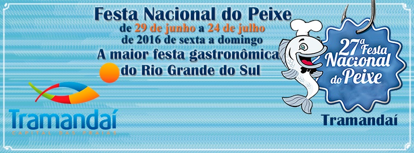 Horário de funcionamento da festa é de sextas-feiras a domingos, das 10h às 24h. A 27ª edição da Festa Nacional do Peixe acontece de 29 de junho a 24 de julho de 2016, no Centro Municipal de Eventos no bairro Centro Lagoa em Tramandaí.
