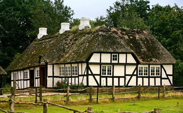 Casas típicas da arquitetura dinamarquesa estão expostas no Museu Den Gamle By: os visitantes podem entrar nos cômodos e ver as decorações internas.