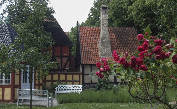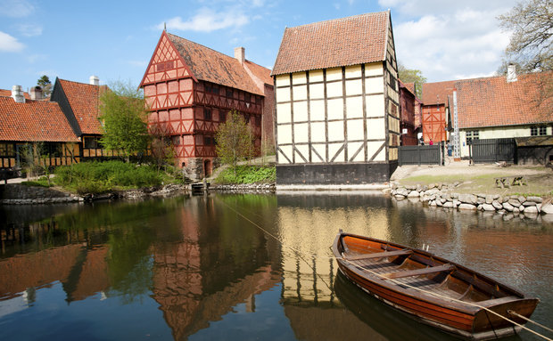 O museu Den Gamle By mostra casas antigas dinamarquesas.