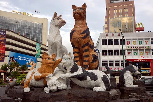 KUCHING, MALÁSIA: sem dúvidas, a cidade mais Cat Friendly que existe no mundo! As homenagens aos gatos estão por toda parte. Nesta cidade tudo gira em torno dos felinos, existe até um curso superior na universidade local voltado especificamente pra quem quer saber tudo sobre gatos. Então tem lojas, cafés, restaurantes, acomodações e, obviamente, um museu.