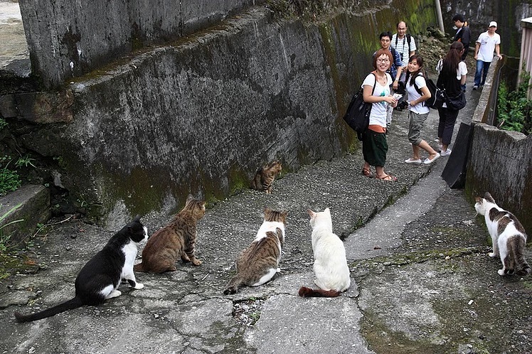 HOUTONG, TAIWAN: é um pequeno vilarejo perto de Taipei, agora chamado carinhosamente de Cat Village. Haviam muitos gatos abandonados que circulavam pelas ruas da cidade. Em 2008 um grupo de pessoas começou a tomar medidas no intuito de melhorar as condições de vida destes animais, fazendo castrações, organizando adoções, esterilizações. O governo municipal decidiu usar esta questão a seu favor, tornando a cidade um pólo para quem gosta destes animais, explorando o “turismo felino”, por assim dizer. Hoje milhares de pessoas vão até a cidade fotografar os gatinhos, acariciar os gatinhos. Uma rede turística foi montada em cima disso.